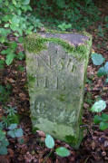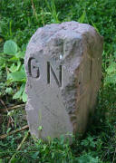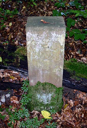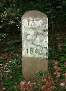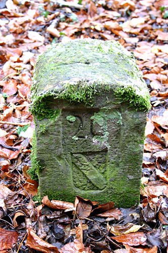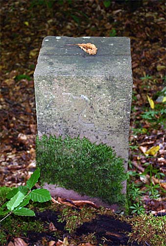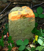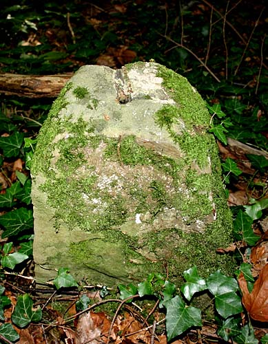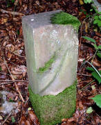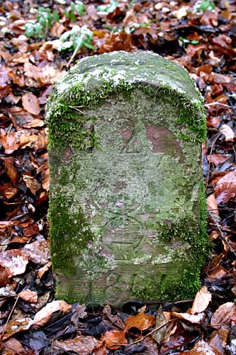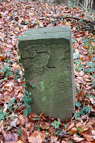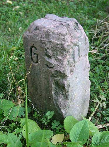Archiv-Nr. GS3485 Kreis: Enzkreis Gemeinden: Stein - Göbrichen Gebiet: Alte Gaben der Grenzstein befindet sich ca. 30 m im Wald und durch eine tiefe Schlucht vom Weg getrennt |
