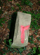 Archiv-Nr. GS3306 Kreis: Enzkreis Gemeinden: Stein - Göbrichen Gebiet: Alte Gaben Grenzverlauf: Eckstein Höhe:350, Breite: 180, Tiefe: 130 Steinkopf: rechtwinklige Abbiegung (in den Wald) |