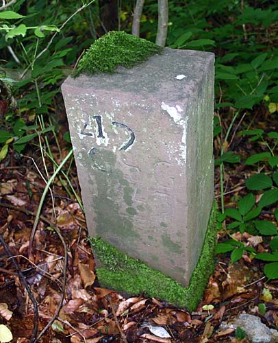 Archiv-Nr. GS2978 Kreis: Enzkreis Gemeinden: Stein - Baden Waldgrenze Gebiet: Hagsberg Grenzverlauf: EcksteinJahr: 1839Höhe: 410, Breite: 290, Tiefe: 260 Abbiegung über den Weg in den Wald |